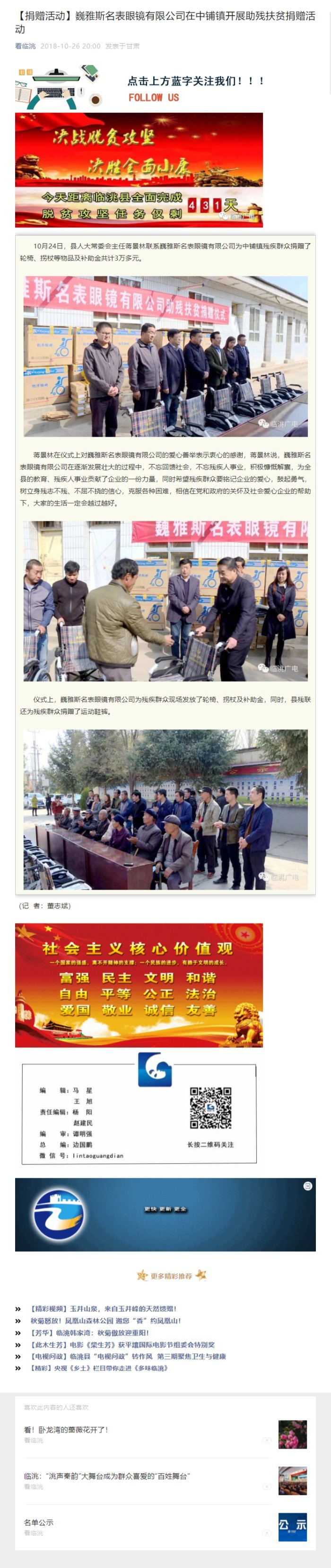 【捐贈活動】巍雅斯名表眼鏡有限公司在中鋪鎮(zhèn)開展助殘扶貧捐贈活動