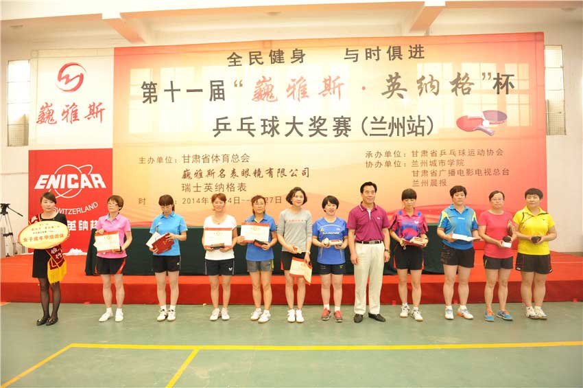 本屆大賽由甘肅省體育總會、巍雅斯名表眼鏡有限公司、瑞士英納格表主辦,甘肅省乒乓球運動協(xié)會承辦,蘭州城市學(xué)院、甘肅廣播電影電視總臺、蘭州晨報協(xié)辦。來自甘肅、寧夏、青海、陜西、內(nèi)蒙古、西藏等六省(區(qū))的76個俱樂部、188支代表隊的800多名運動員參加了所在組別的團(tuán)體和單打比賽。最終好朋友一隊的趙義春、巍雅斯一隊的黃春紅等六名運動員分別摘取了5000多元手表大獎,其余110多個獎項也最終花落各家。