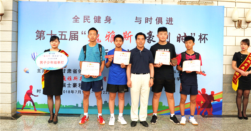 中國(guó)鐘表商會(huì)副會(huì)長(zhǎng)、甘肅省眼鏡協(xié)會(huì)會(huì)長(zhǎng)、甘肅省乒協(xié)副會(huì)長(zhǎng)、巍雅斯名表眼鏡有限公司董事長(zhǎng)裴正江、甘肅省乒乓球運(yùn)動(dòng)協(xié)會(huì)會(huì)長(zhǎng)韓力、原蘭州城市學(xué)院院長(zhǎng)王汝鋒、巍雅斯名表眼鏡有限公司副總裁裴明宏、甘肅省乒乓球運(yùn)動(dòng)協(xié)會(huì)秘書長(zhǎng)宋建農(nóng)、裁委會(huì)主任石振民、夲次大獎(jiǎng)賽裁判長(zhǎng)關(guān)欣出席頒獎(jiǎng)儀式并為獲獎(jiǎng)代表隊(duì)和運(yùn)動(dòng)員頒獎(jiǎng)。
