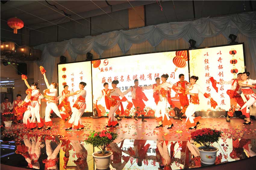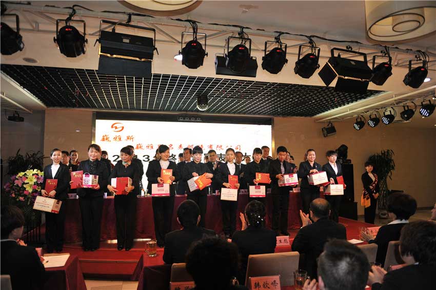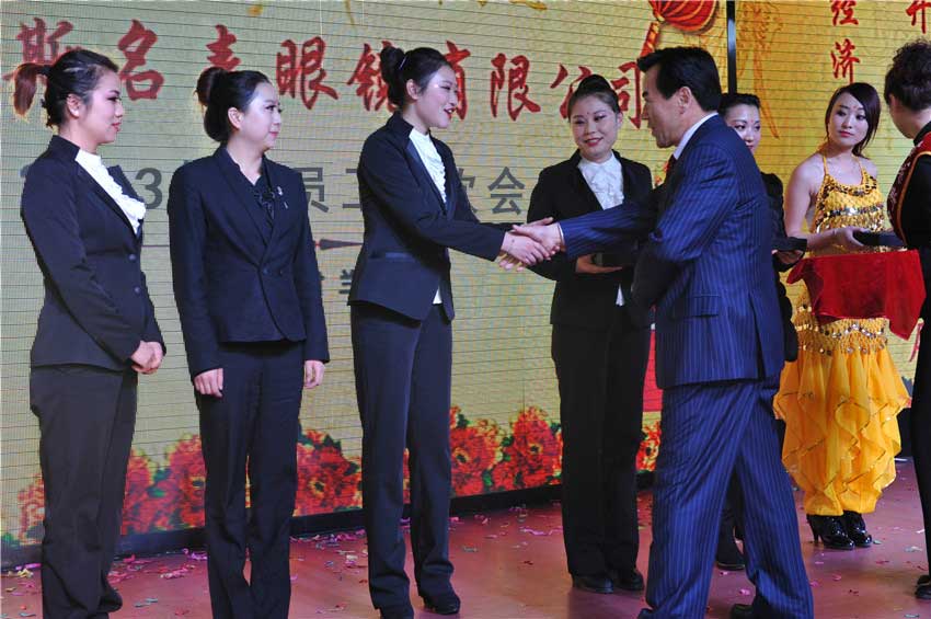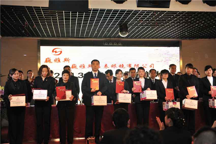 在總結(jié)暨表彰大會上,巍雅斯名表眼鏡有限公司總裁就2013年各個分公司和部門的各項情況做了總結(jié),對2014年的各項工作提出了規(guī)劃及要求。并指出:在過去的2013年雖然受整體經(jīng)濟環(huán)境的影響,但巍雅斯名表眼鏡有限公司的各項業(yè)績均取得了預(yù)期的目標(biāo)。相信2014年,在公司上下的團(tuán)結(jié)努力下,將會取得更輝煌的成就??偨Y(jié)暨表彰大會隨后表彰了在2013年涌現(xiàn)出的33名“先進(jìn)工作者”及4個“先進(jìn)集體”。在隨后舉行的2013年度員工聯(lián)歡會上,來自各個分公司(分部)選送的精彩聯(lián)歡節(jié)目和幸運抽獎為所有的參會人員帶來了歡樂,將聯(lián)歡會的氣氛推向了高潮。