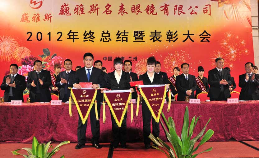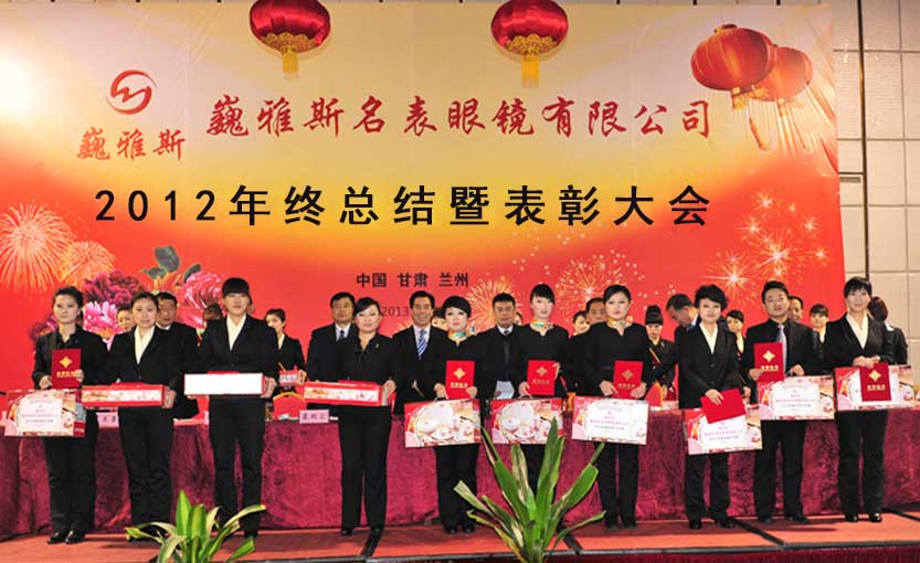 2013年1月6日下午,巍雅斯名表眼鏡有限公司2012年度年終總結(jié)暨表彰大會(huì)在蘭州隆重舉行。來自臨洮公司、蘭州公司、銀川公司、西安公司、西寧分部、拉薩分部及各個(gè)地市的員工代表及管理人員總計(jì)320余人參加會(huì)議。