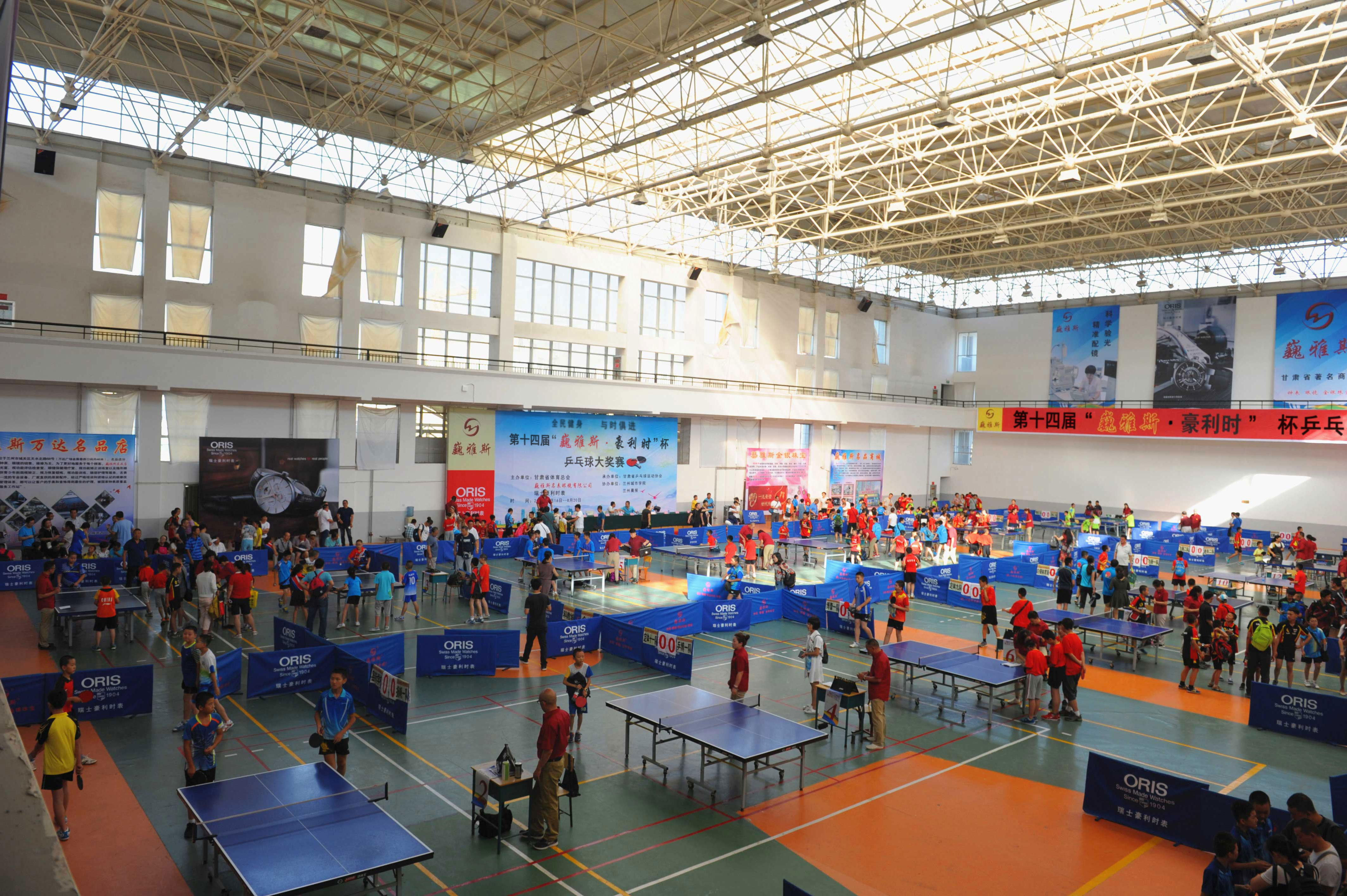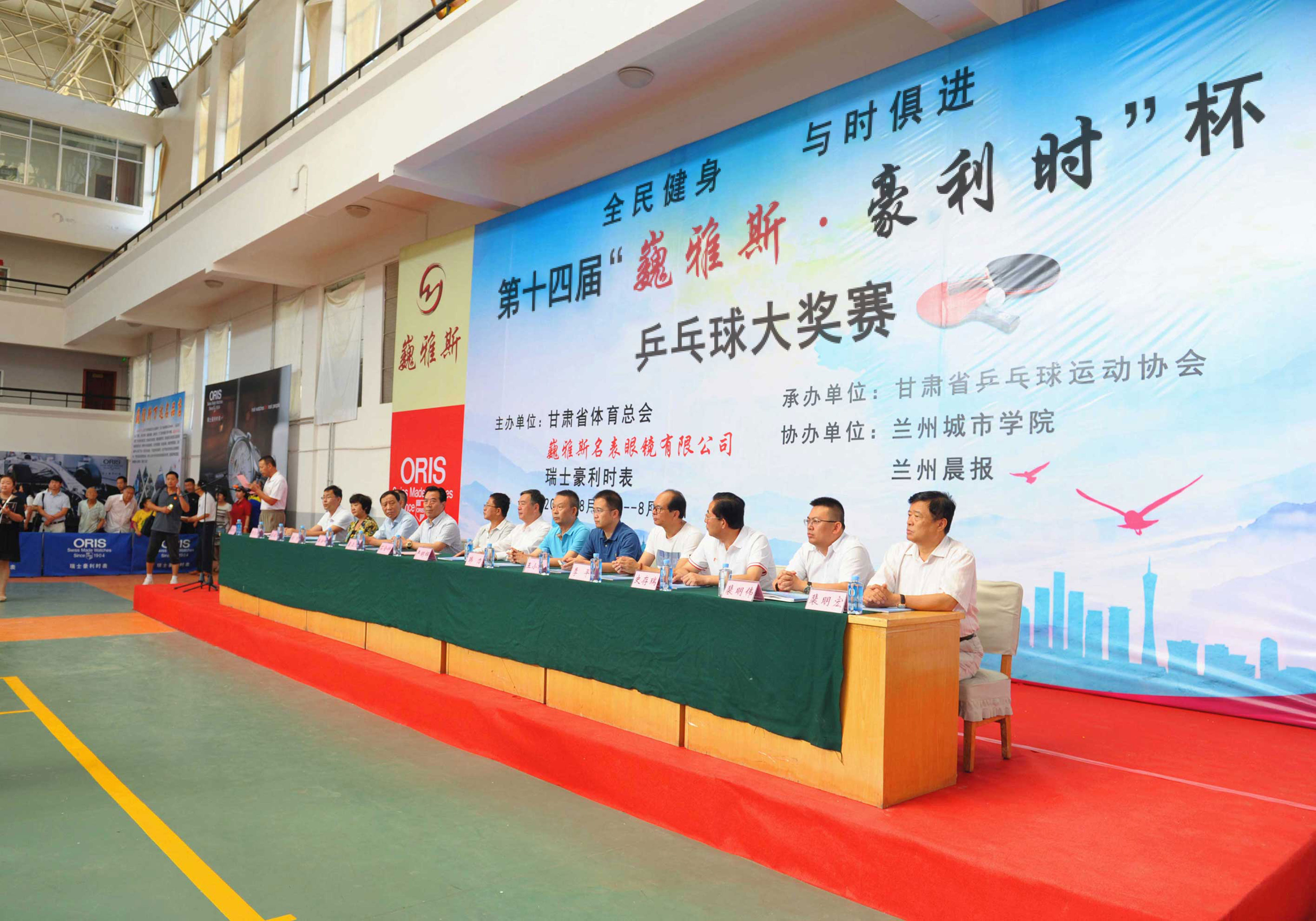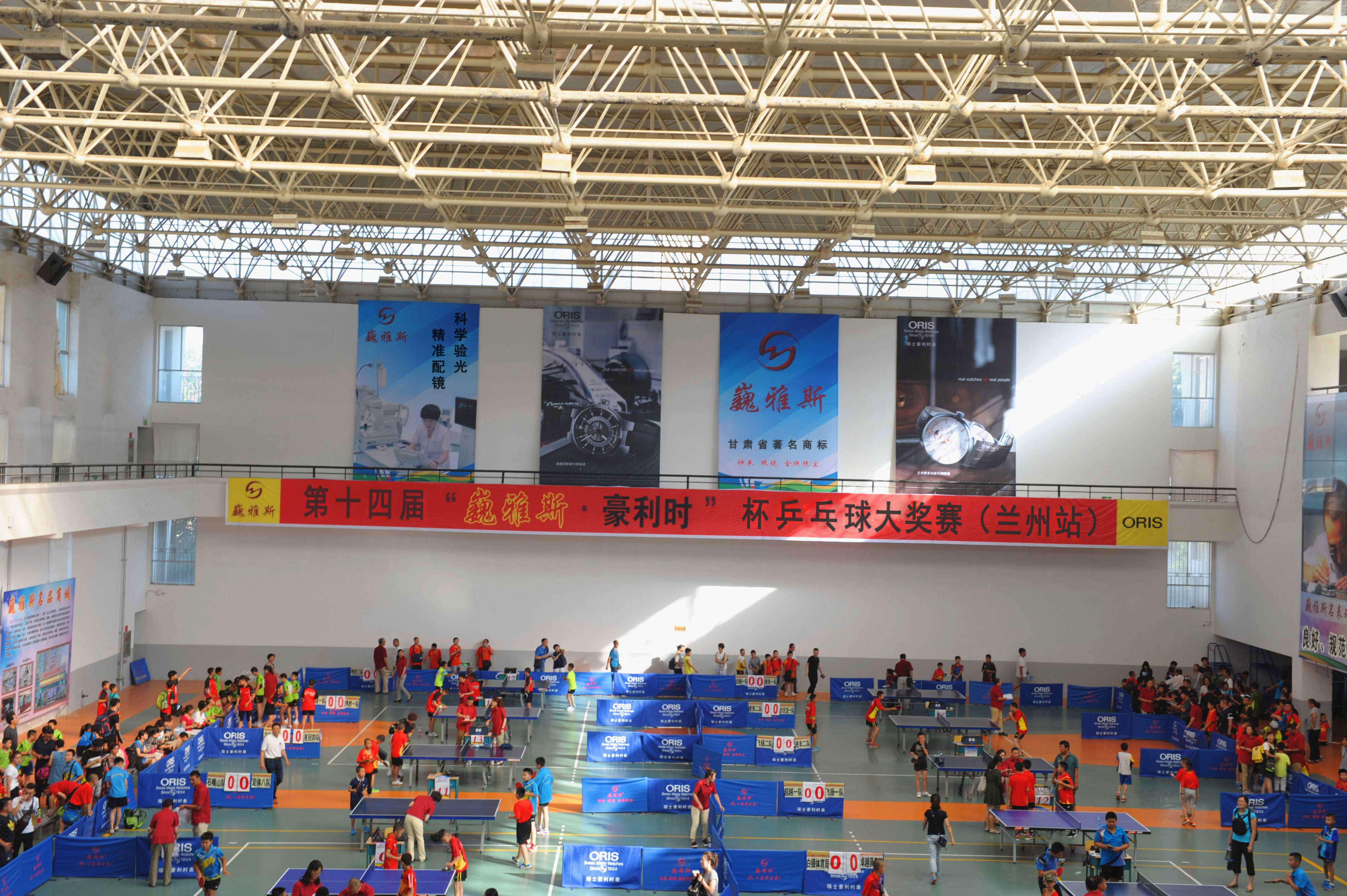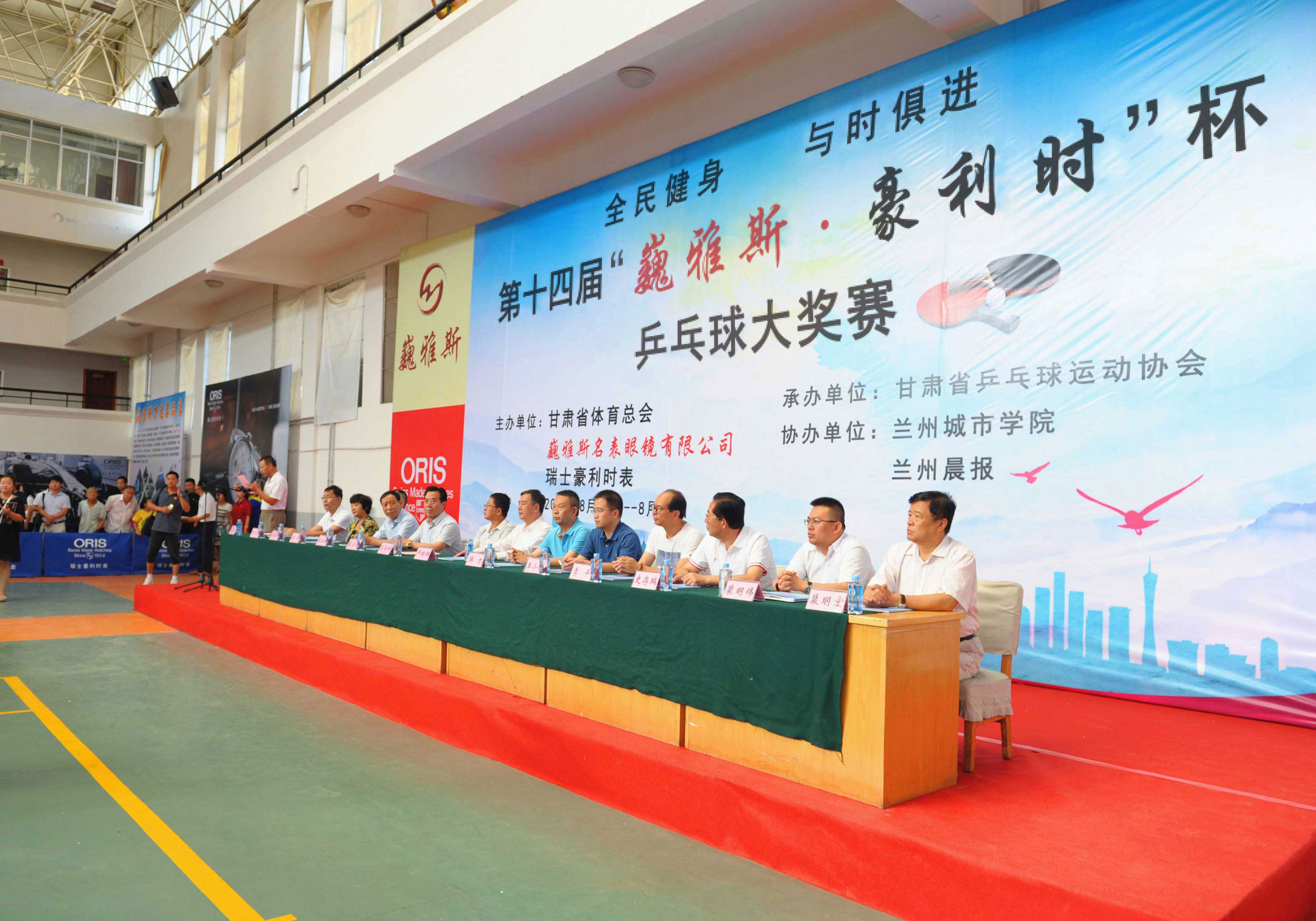 8月16日上午,由巍雅斯名表眼鏡有限公司、瑞士豪利時(shí)表主辦,甘肅省乒乓球協(xié)會(huì)承辦,蘭州城市學(xué)院、蘭州晨報(bào)協(xié)辦的“全民健身,與時(shí)俱進(jìn)”第十四屆“巍雅斯?豪利時(shí)”杯乒乓球大獎(jiǎng)賽(蘭州站)在蘭州城市學(xué)院培黎校區(qū)體育館拉開帷幕。來自90個(gè)俱樂部,250多支代表隊(duì)的1158名運(yùn)動(dòng)員,參加所在組別的團(tuán)體和單打比賽,在享受乒乓快樂的同時(shí),向 110多個(gè)獎(jiǎng)項(xiàng)展開激烈角逐,向高達(dá)近8000元的冠軍大獎(jiǎng)發(fā)起沖擊。
