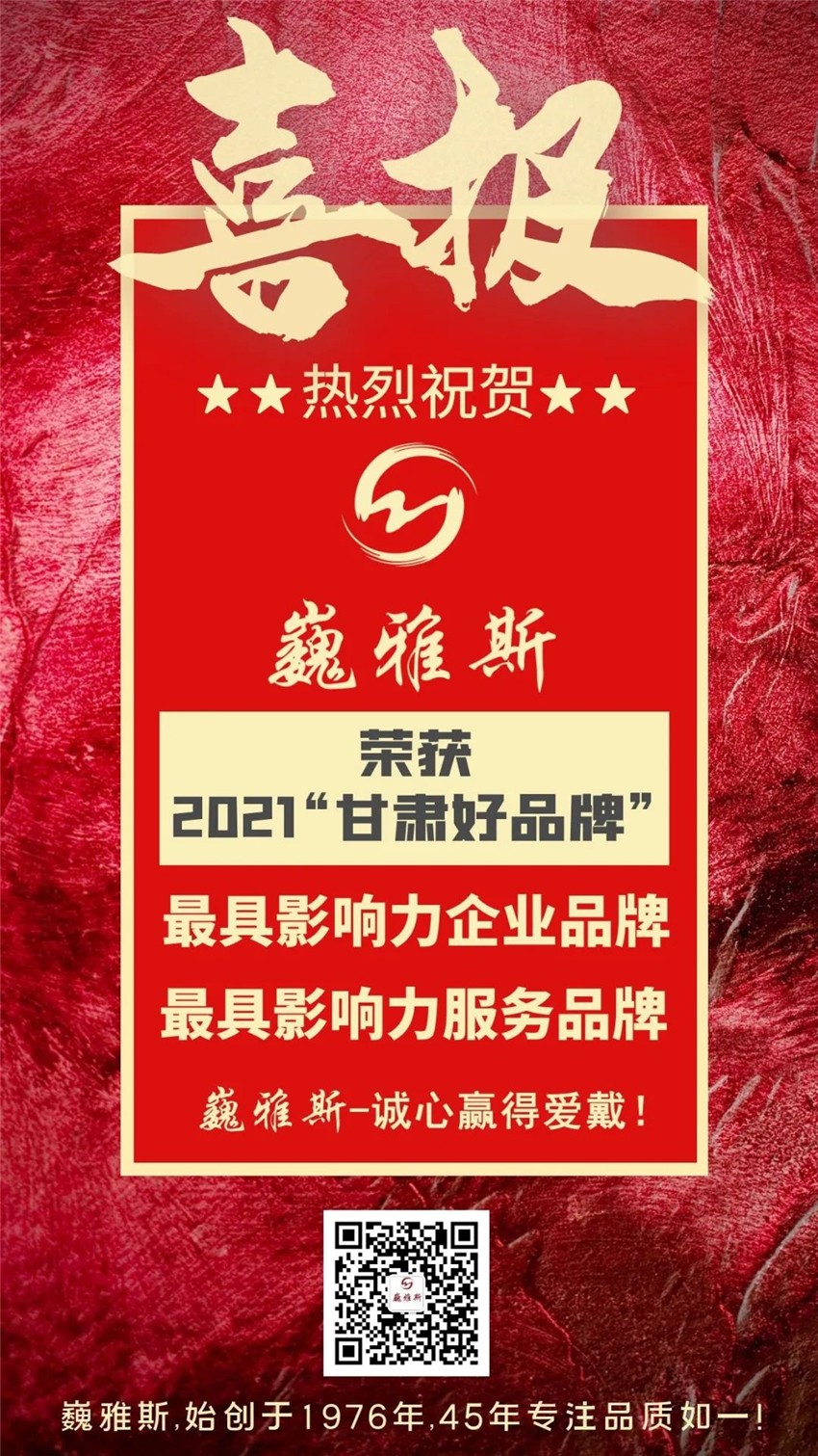 巍雅斯憑借過硬實力,在本次活動中繼續(xù)被評為“最具影響力企業(yè)品牌”,同時也被評為“最具影響力服務(wù)品牌”。是繼2018年第一屆甘肅好品牌評為“最具影響力企業(yè)品牌”后,再次獲得甘肅好品牌兩項榮譽稱號。