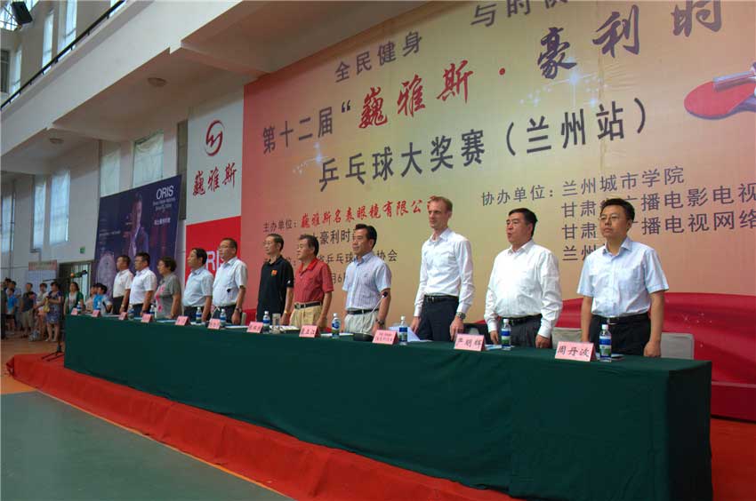 由巍雅斯名表眼鏡有限公司、瑞士豪利時(shí)表主辦,甘肅省乒乓球協(xié)會(huì)承辦,蘭州城市學(xué)院、甘肅廣播電影電視總臺、甘肅廣播電視網(wǎng)絡(luò)股份有限公司、蘭州晨報(bào)協(xié)辦的第十二屆“巍雅斯?豪利時(shí)”杯乒乓球大獎(jiǎng)賽(蘭州站),今日在蘭州城市學(xué)院培黎校區(qū)體育館正式開幕。來自85個(gè)俱樂部,221支代表隊(duì)的1000多名運(yùn)動(dòng)員,參加所在組別的團(tuán)體和單打比賽,在享受乒乓快樂的同時(shí),向 110多個(gè)獎(jiǎng)項(xiàng)展開激烈角逐,向高達(dá)近8000元的冠軍大獎(jiǎng)發(fā)起沖刺。