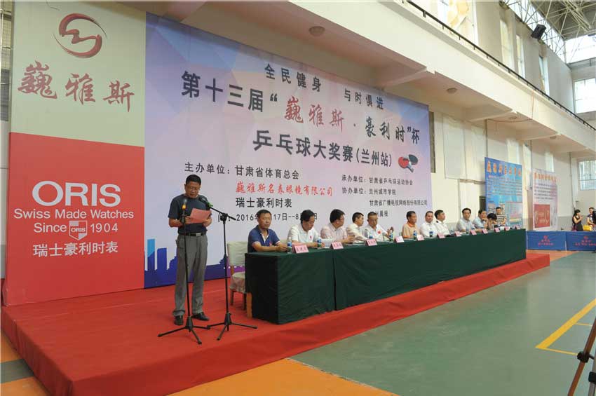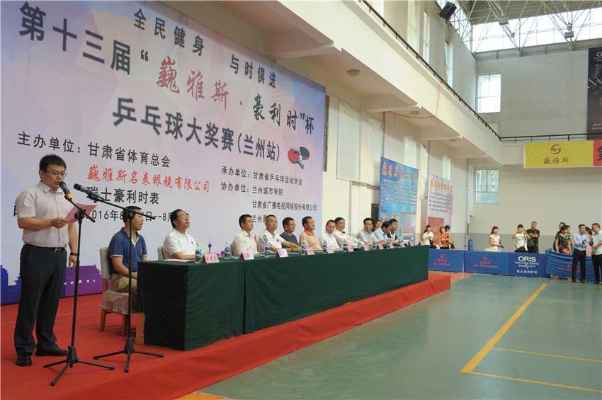 由甘肅省體育總會(huì),巍雅斯名表眼鏡有限公司、瑞士豪利時(shí)表主辦,甘肅省乒乓球協(xié)會(huì)承辦,蘭州城市學(xué)院、甘肅廣播電視網(wǎng)絡(luò)股份有限公司、蘭州晨報(bào)協(xié)辦的全民健身,與時(shí)俱進(jìn)第十三屆“巍雅斯?豪利時(shí)”杯乒乓球大獎(jiǎng)賽(蘭州站),8月17日在蘭州城市學(xué)院培黎校區(qū)體育館正式開幕。來自99個(gè)俱樂部,260支代表隊(duì)的1000多名運(yùn)動(dòng)員,參加所在組別的團(tuán)體和單打比賽,在享受乒乓快樂的同時(shí),向 110多個(gè)獎(jiǎng)項(xiàng)展開激烈角逐,向高達(dá)近8000元的冠軍大獎(jiǎng)發(fā)起沖擊。