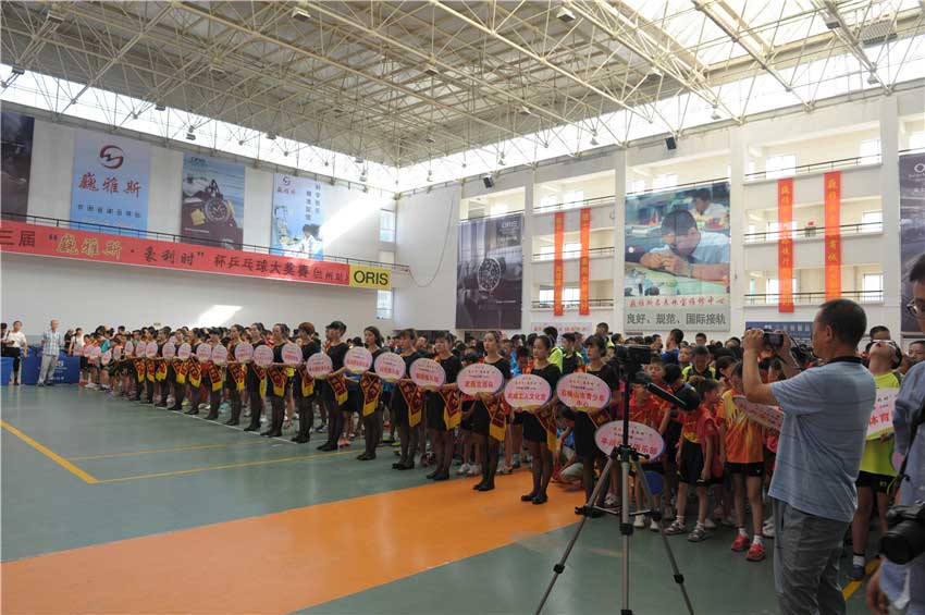 原蘭州軍區(qū)空軍副司令員張瑞勝、中國(guó)鐘表商會(huì)副會(huì)長(zhǎng)、甘肅省眼鏡協(xié)會(huì)會(huì)長(zhǎng)、甘肅省乒乓球運(yùn)動(dòng)協(xié)會(huì)副會(huì)長(zhǎng)、巍雅斯名表眼鏡有限公司董事長(zhǎng)裴正江、巍雅斯名表眼鏡有限公司總裁裴明偉、瑞士豪利時(shí)表大中華區(qū)總裁David Weber先生、甘肅省體育總會(huì)秘書長(zhǎng)石金鐘、瑞士豪利時(shí)表中國(guó)區(qū)總經(jīng)理嚴(yán)明輝、甘肅省乒乓球運(yùn)動(dòng)協(xié)會(huì)會(huì)長(zhǎng)韓力、甘肅省乒乓球運(yùn)動(dòng)協(xié)會(huì)秘書長(zhǎng)宋建農(nóng)及相關(guān)領(lǐng)導(dǎo)等社會(huì)各界人士、運(yùn)動(dòng)員、裁判員、工作人員約一千兩百余人參加了簡(jiǎn)樸但氣氛熱烈的大獎(jiǎng)賽開幕式。