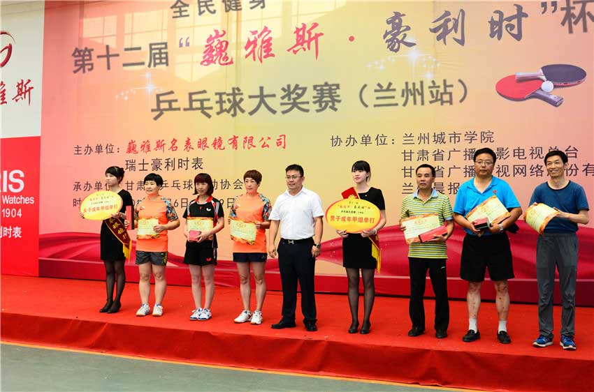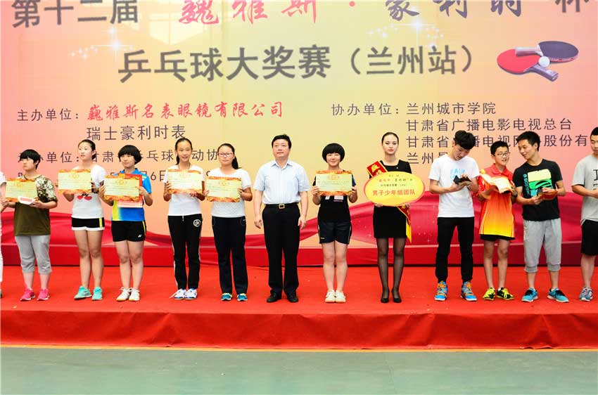 經(jīng)過近5天緊張激烈的比賽,第十二屆“巍雅斯·豪利時”杯乒乓球大獎賽(蘭州站)比賽于8月9日圓滿落幕。多名省級領(lǐng)導(dǎo)和巍雅斯名表眼鏡有限公司董事長、總裁等嘉賓出席閉幕式,并為獲獎運動員頒獎。