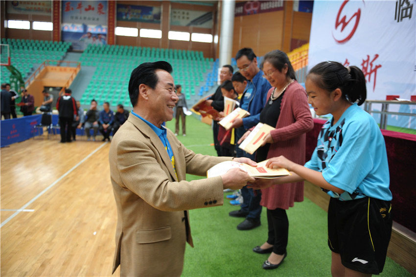 甘肅省乒乓球運(yùn)動(dòng)協(xié)會(huì)會(huì)長(zhǎng)韓力,甘肅省乒乓球運(yùn)動(dòng)協(xié)會(huì)副會(huì)長(zhǎng)、巍雅斯名表眼鏡有限公司董事長(zhǎng)裴正江,甘肅省乒乓球運(yùn)動(dòng)協(xié)會(huì)秘書長(zhǎng)宋建農(nóng),臨洮縣總工會(huì)常務(wù)副主席張國(guó)林、臨洮縣體育運(yùn)動(dòng)中心主任劉儉、臨洮縣總工會(huì)副主席劉艷,巍雅斯名表眼鏡有限公司總裁裴明偉,巍雅斯名表眼鏡有限公司副總裁裴明宏,廣河縣誠(chéng)德民族用品有限公司總經(jīng)理馬應(yīng)虎等領(lǐng)導(dǎo)出席閉幕式并為獲獎(jiǎng)運(yùn)動(dòng)員頒獎(jiǎng)。