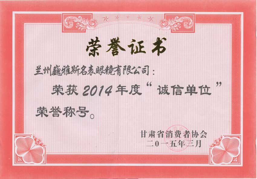 近日,蘭州巍雅斯名表眼鏡有限公司再度被甘肅省消費(fèi)者協(xié)會(huì)授予“誠(chéng)信單位”稱號(hào)。憑借著優(yōu)質(zhì)的服務(wù)和較高的顧客評(píng)價(jià),蘭州巍雅斯名表眼鏡有限公司已是連續(xù)多年蟬聯(lián)這一殊榮!