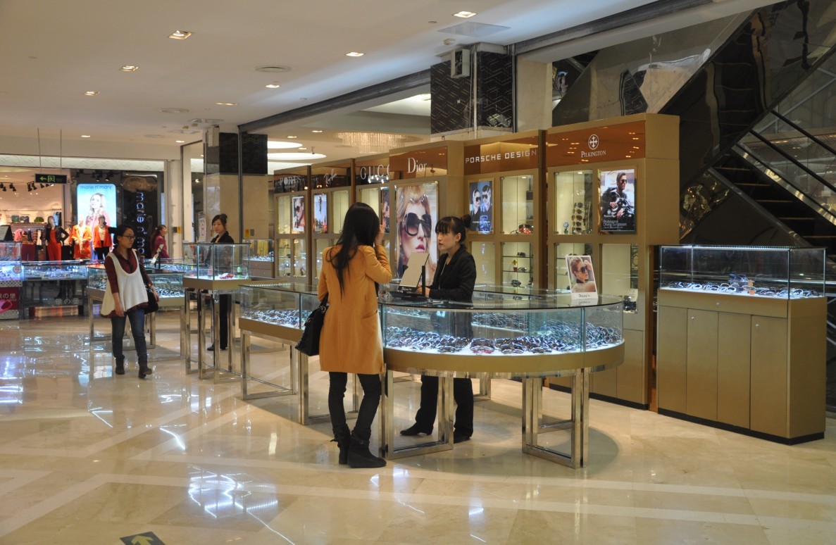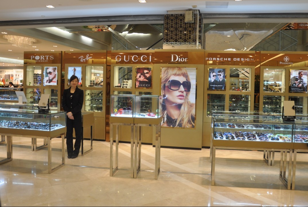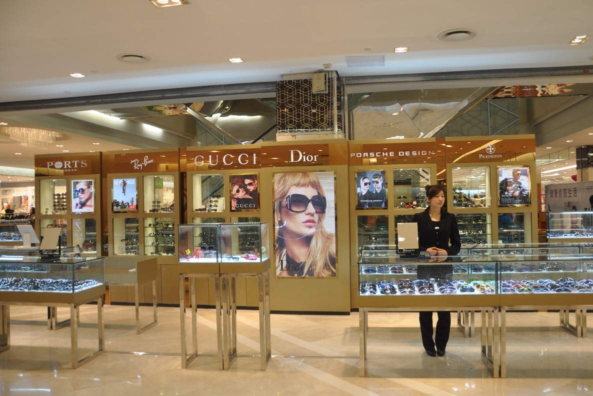 國芳百貨二樓巍雅斯眼鏡擁有國內(nèi)外知名太陽鏡品牌:古馳、迪奧、寶姿、保時捷、皮爾金頓、暴龍、帕莎、花雨傘等等。