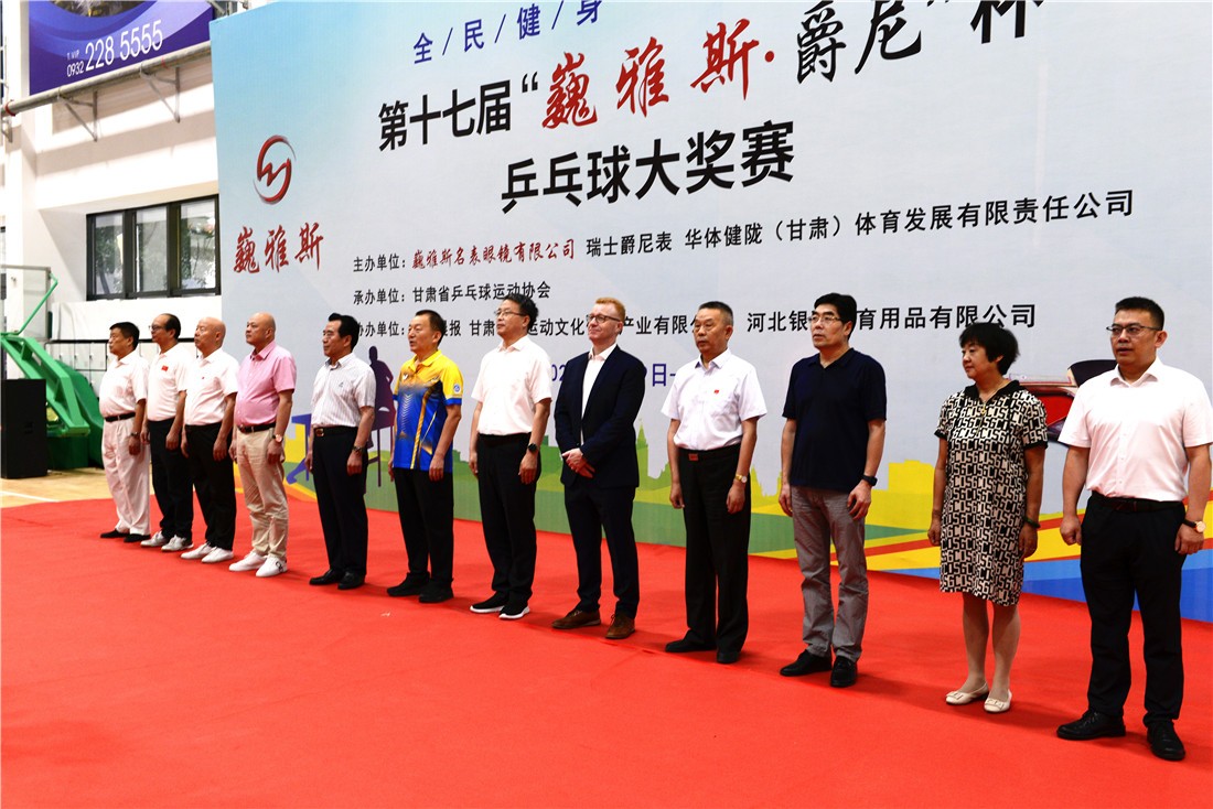中國(guó)鐘表商分會(huì)副會(huì)長(zhǎng)、甘肅省眼鏡協(xié)會(huì)會(huì)長(zhǎng)、甘肅省乒乓球運(yùn)動(dòng)協(xié)會(huì)副會(huì)長(zhǎng)、巍雅斯名表眼鏡有限公司董事長(zhǎng)裴正江,瑞士爵尼手表全球總裁帕特里克.丹尼爾.薩拉丁,瑞士爵尼遠(yuǎn)東有限公司董事長(zhǎng)兼總裁陳道信及有關(guān)領(lǐng)導(dǎo)、運(yùn)動(dòng)員、裁判員、教練員、工作人員一起參加了簡(jiǎn)樸但氣氛熱烈的大獎(jiǎng)賽開幕式。