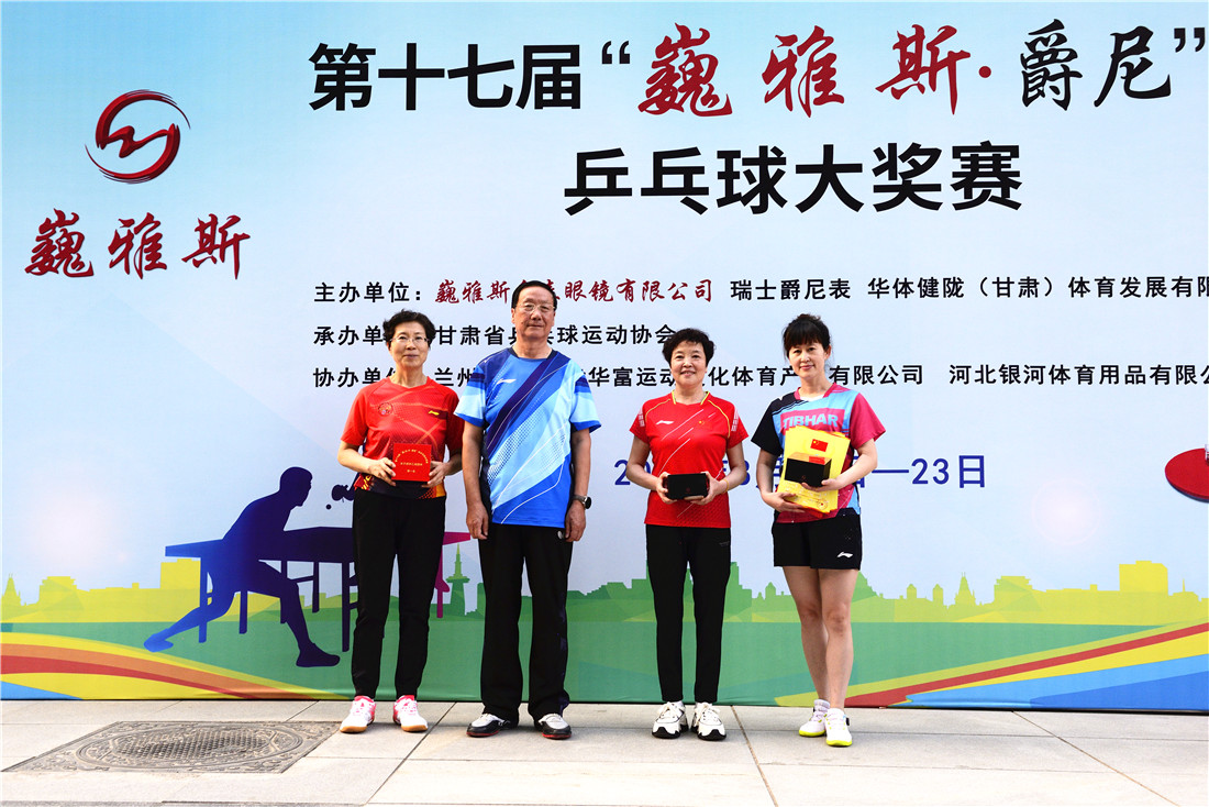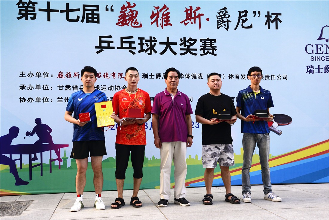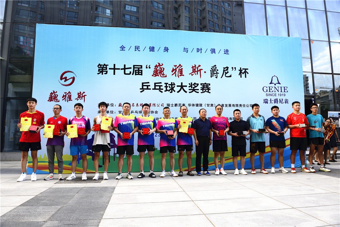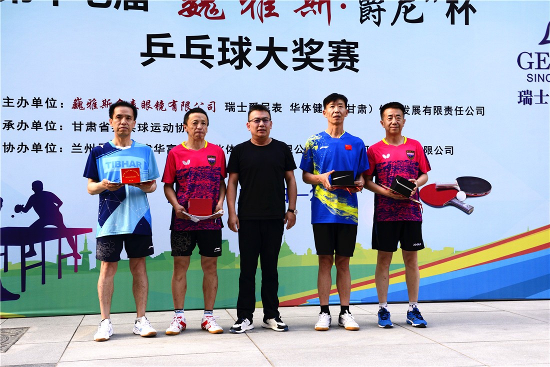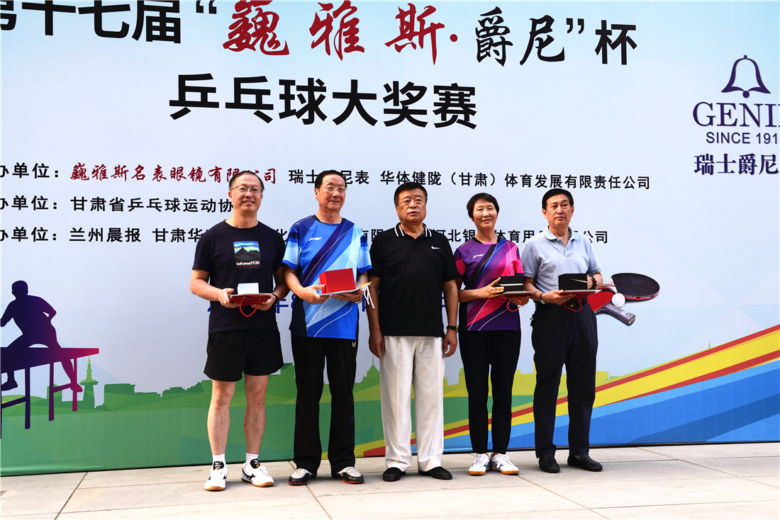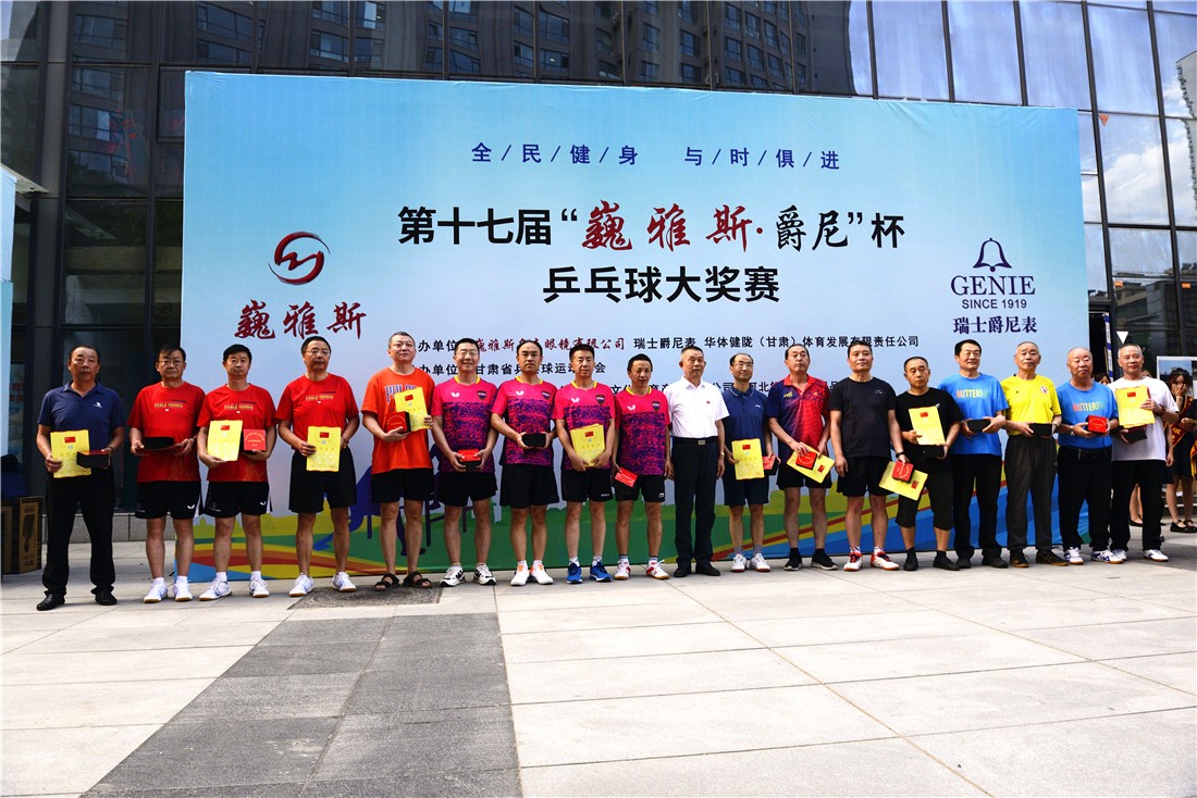 第十七屆 “ 巍雅斯 · 爵尼杯”乒乓球大獎賽比賽,經(jīng)過兩天緊張激烈的角逐,8月20日下午,成人組和嘉賓組名次花落其主。中國鐘表商會副會長、甘肅省眼鏡協(xié)會會長、甘肅省乒協(xié)副會長、巍雅斯名表眼鏡有限公司董事長裴正江,甘肅省乒乓球運(yùn)動協(xié)會會長韓力,甘肅省乒乓球運(yùn)動協(xié)會副會長張占學(xué)、姚天宏,甘肅省乒乓球運(yùn)動協(xié)會顧問苗發(fā),青海省乒協(xié)副主席高麗嚴(yán),巍雅斯名表眼鏡有限公司總裁裴明偉,巍雅斯名表眼鏡有限公司副總裁裴明宏出席頒獎儀式并為獲獎代表隊(duì)和運(yùn)動員頒獎。甘肅省乒協(xié)秘書長宋建農(nóng)主持頒獎儀式。