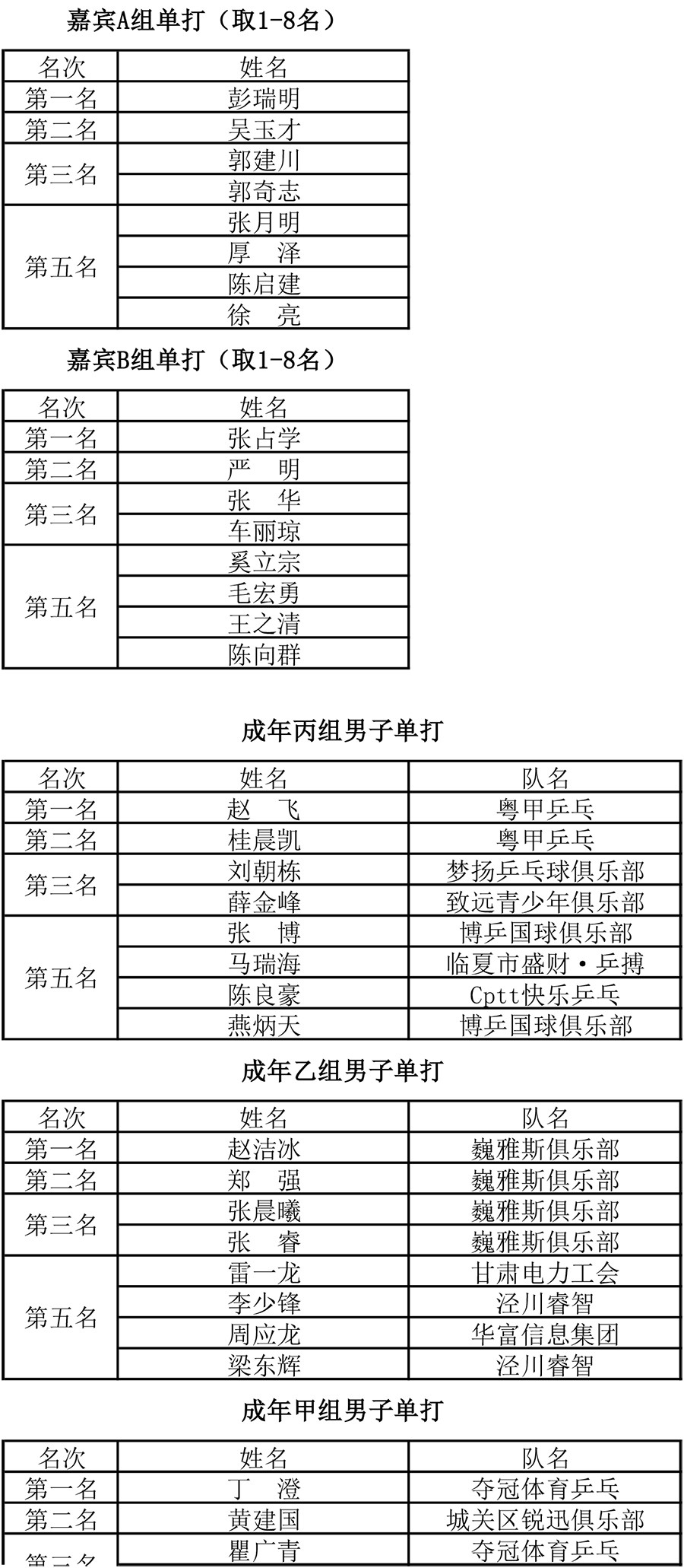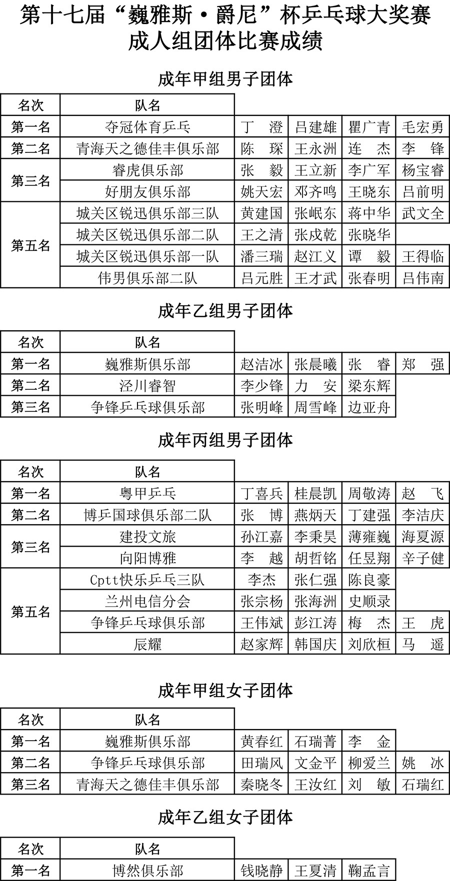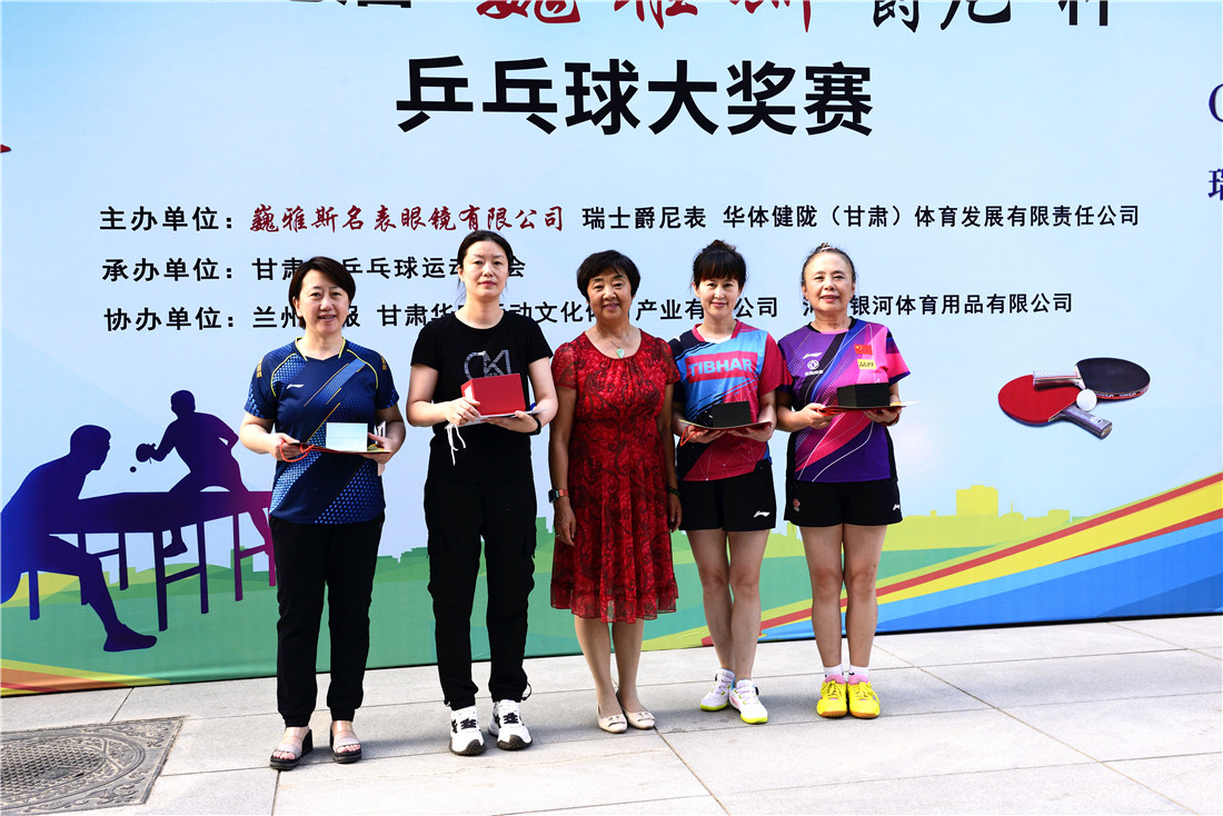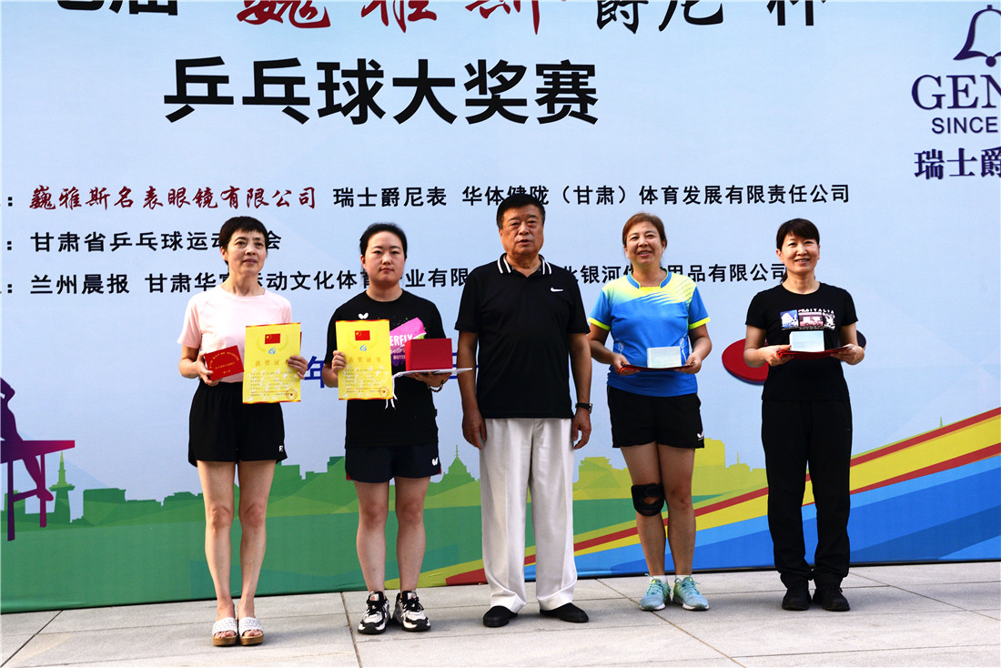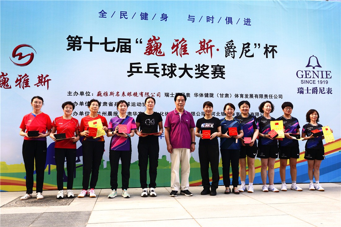第十七屆 “ 巍雅斯 · 爵尼杯”乒乓球大獎賽比賽,經(jīng)過兩天緊張激烈的角逐,8月20日下午,成人組和嘉賓組名次花落其主。中國鐘表商會副會長、甘肅省眼鏡協(xié)會會長、甘肅省乒協(xié)副會長、巍雅斯名表眼鏡有限公司董事長裴正江,甘肅省乒乓球運(yùn)動協(xié)會會長韓力,甘肅省乒乓球運(yùn)動協(xié)會副會長張占學(xué)、姚天宏,甘肅省乒乓球運(yùn)動協(xié)會顧問苗發(fā),青海省乒協(xié)副主席高麗嚴(yán),巍雅斯名表眼鏡有限公司總裁裴明偉,巍雅斯名表眼鏡有限公司副總裁裴明宏出席頒獎儀式并為獲獎代表隊(duì)和運(yùn)動員頒獎。甘肅省乒協(xié)秘書長宋建農(nóng)主持頒獎儀式。