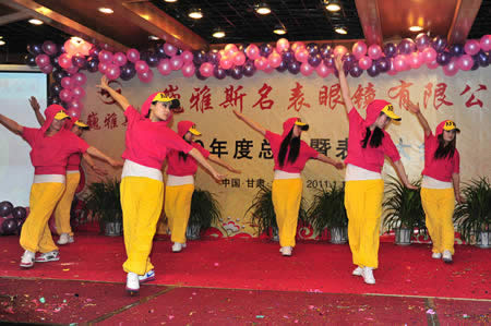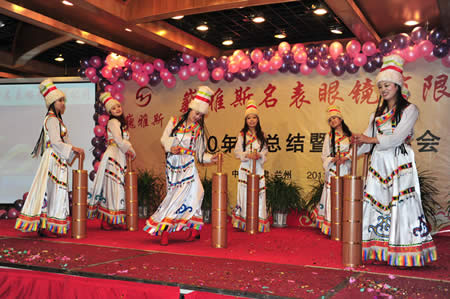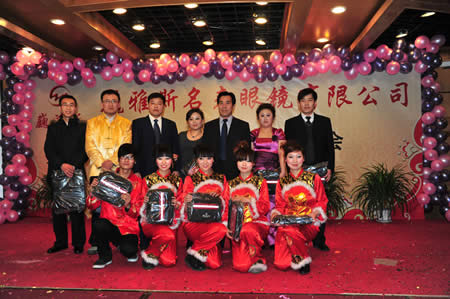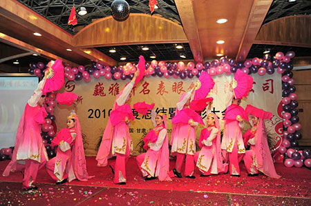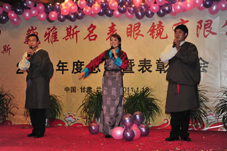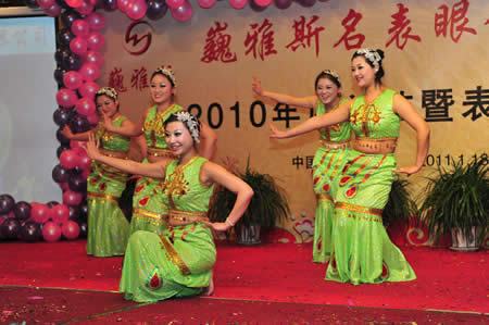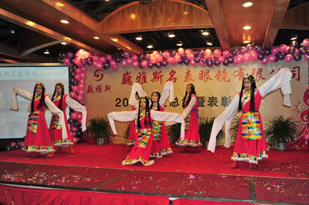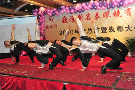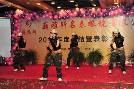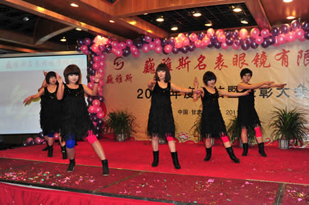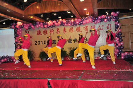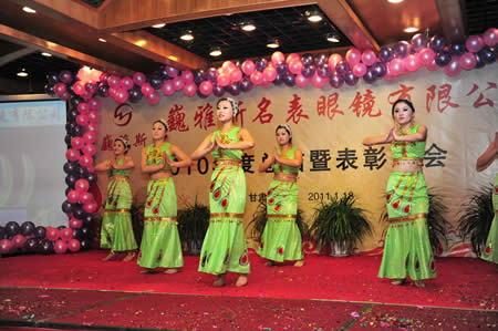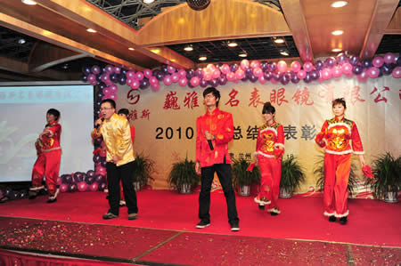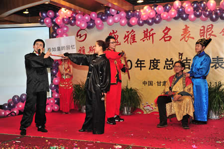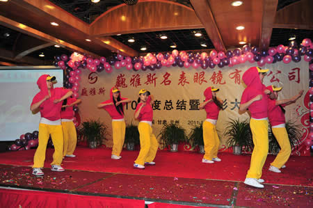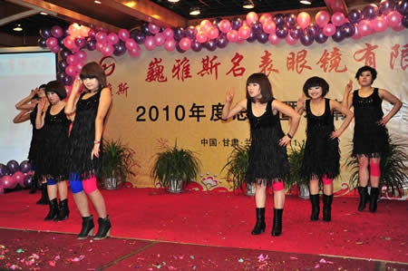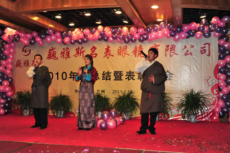 2011年1月18日,巍雅斯名表眼鏡有限公司2010年度總結(jié)暨表彰先進(jìn)大會(huì)在蘭州錦江陽光酒店舉行,來自西安、銀川、西寧、拉薩、天水等地的部分員工240多人歡聚一堂,共敘友誼、共商發(fā)展,會(huì)餐后舉辦了豐富多彩的聯(lián)歡晚會(huì)。前來走訪的以經(jīng)營(yíng)古馳、迪奧、BOSS、阿瑪尼等高端眼鏡品牌為主的意大利霞飛諾集團(tuán)中國(guó)區(qū)總裁雅各布(Jacopo)先生及日本尼康鏡片西北區(qū)業(yè)務(wù)經(jīng)理張海青先生也興致勃勃的參加了晚宴和聯(lián)歡晚會(huì)。